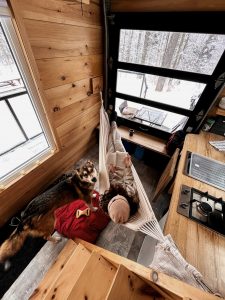 106 sq/ft | Kitchenette, Composting Toilet, Solar Options | Loft Queen Bed |